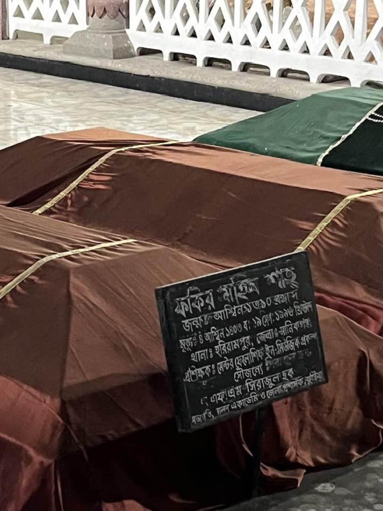 When Lalon had returned to his own family after recovering from his illness, his mother and wife both rejected him due to committing “onno pap” or the “sin of food” by sharing food at a Muslim home, a common taboo of the era. He then returned to Kushtia, where he is supposed to have met Siraj Sai, his Guru. Siraj was a Sufi Baul, a palanquin bearer by profession.  And his new journey began.